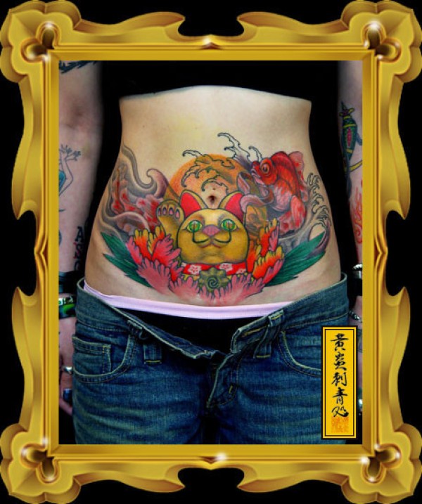 彩色招财猫_动物纹身图案大全_纹身图吧