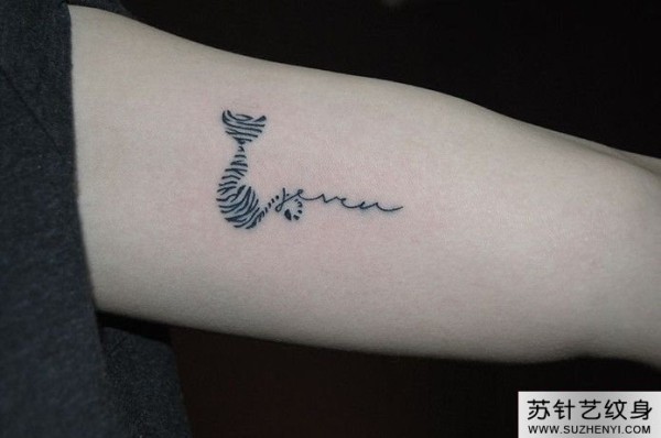 内侧线条猫咪纹身_动物纹身图案大全_纹身图吧