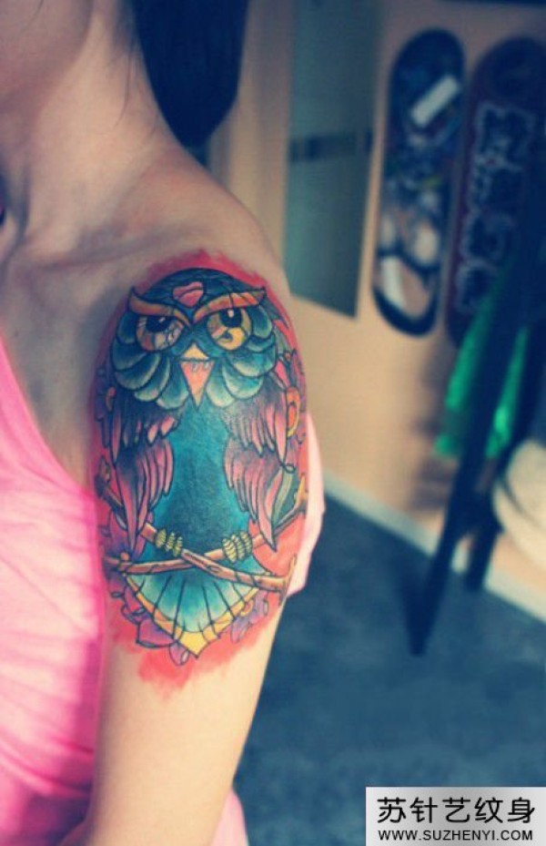 彩绘猫头鹰纹身_动物纹身图案大全_纹身图吧