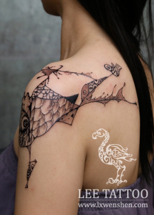 渔网纹身鱼纹身创意纹身图案_动物纹身图案大全_纹身图吧