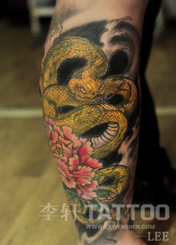 蛇牡丹纹身图案_动物纹身图案大全_纹身图吧