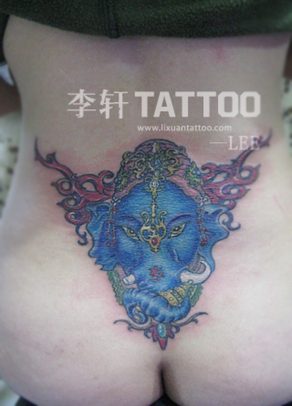 李轩作品动物纹身蓝色大象_动物纹身图案大全_纹身图吧