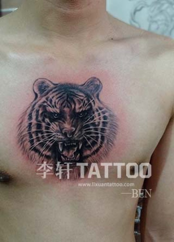 老虎头动物纹身图案_动物纹身图案大全_纹身图吧