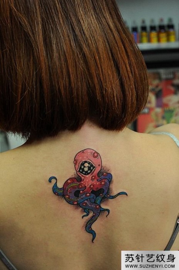 创意时尚怪异格子独眼小章鱼纹身_动物纹身图案大全_纹身图吧