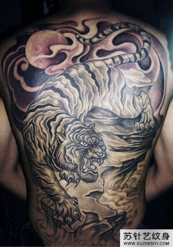 男人霸气时尚个性带云老虎纹身_动物纹身图案大全_纹身图吧