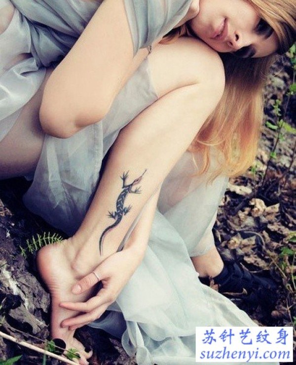 女孩腿上壁虎刺青_动物纹身图案大全_纹身图吧