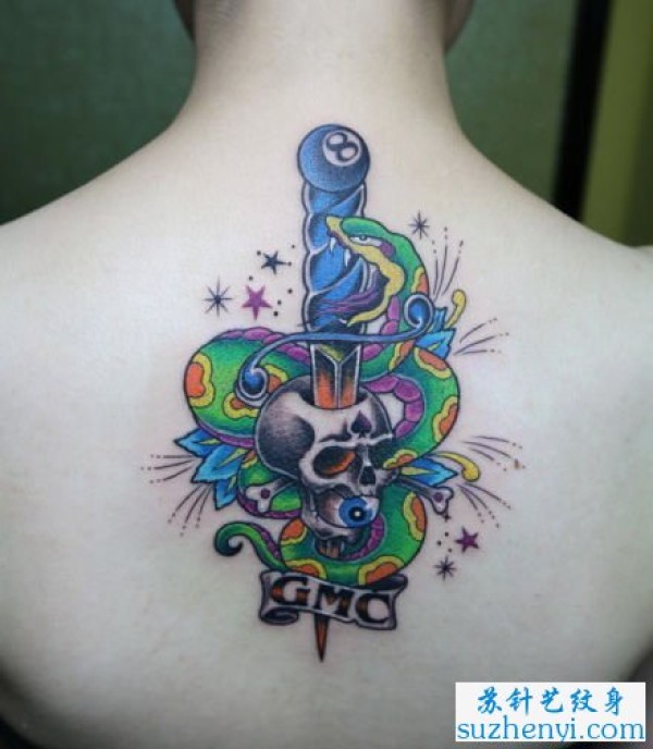 漂亮的彩色蛇与匕首纹身图案_动物纹身图案大全_纹身图吧