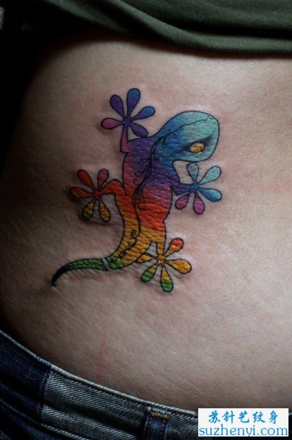 抽象彩色壁虎纹身_动物纹身图案大全_纹身图吧