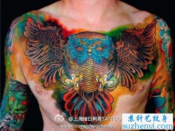 前胸猫头鹰纹身图_动物纹身图案大全_纹身图吧