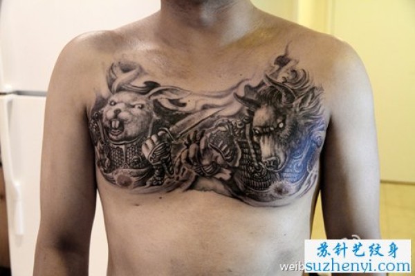 胸帅兔子与牛纹身_动物纹身图案大全_纹身图吧