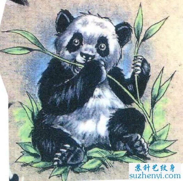 国宝熊猫吃竹子纹身_动物纹身图案大全_纹身图吧