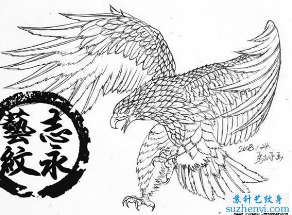 雄鹰展翅线稿纹身图案_动物纹身图案大全_纹身图吧