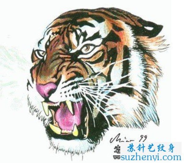 彩色虎头纹身图_动物纹身图案大全_纹身图吧