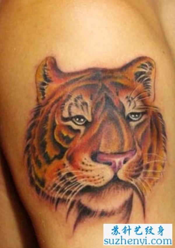 彩色老虎虎头纹身图案_动物纹身图案大全_纹身图吧