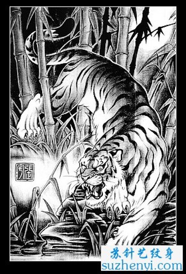 竹林下山虎纹身图案_动物纹身图案大全_纹身图吧