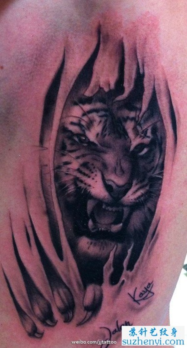 老虎撕皮纹身图案_动物纹身图案大全_纹身图吧