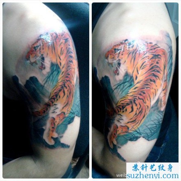 彩色上山虎纹身图案_动物纹身图案大全_纹身图吧