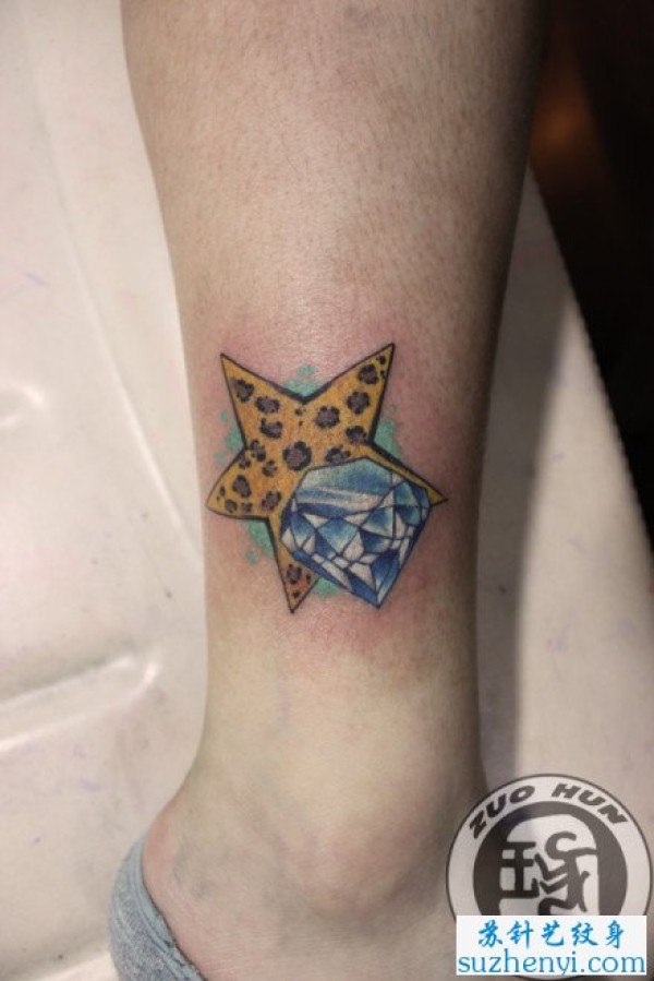 豹纹五角星与彩色钻石纹身_动物纹身图案大全_纹身图吧