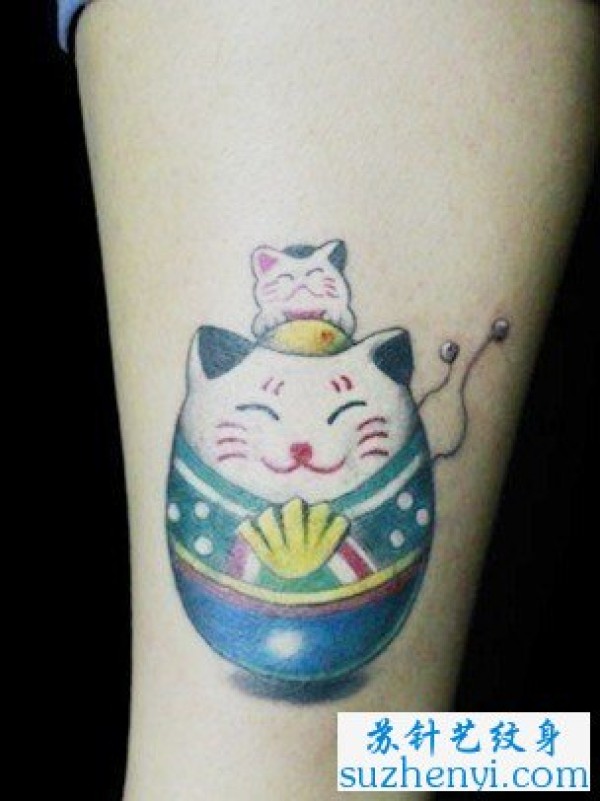 不倒招财猫纹身_动物纹身图案大全_纹身图吧