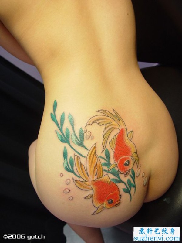 臀部彩色小金鱼纹身_动物纹身图案大全_纹身图吧