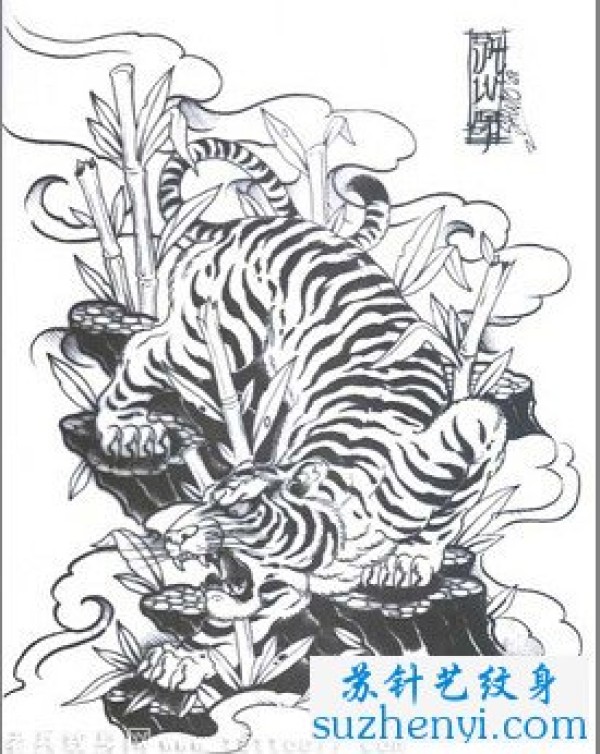 穿插云雾霸气下山虎纹身图案_动物纹身图案大全_纹身图吧