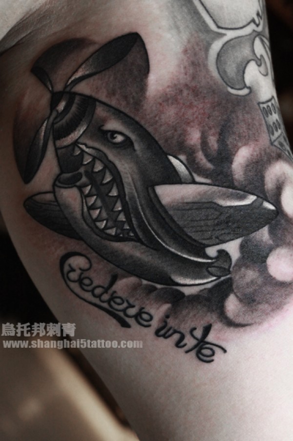 鲨鱼战斗机_动物纹身图案大全_纹身图吧