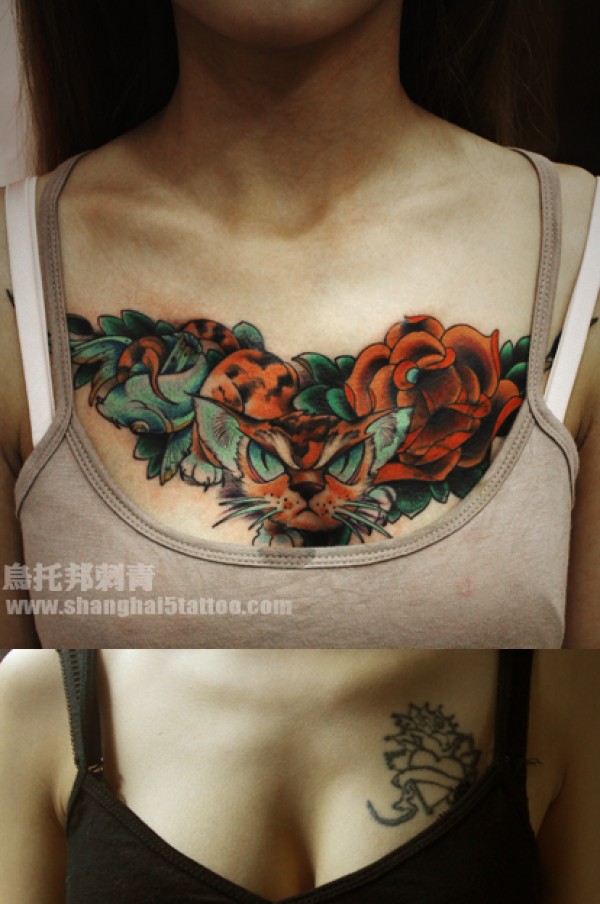 V领小猫(覆盖作品)_动物纹身图案大全_纹身图吧