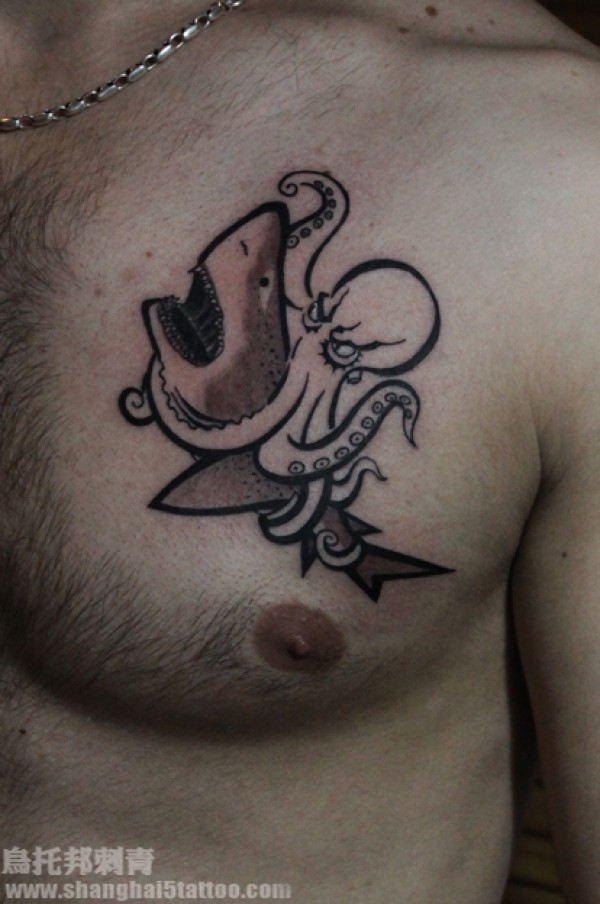 章鱼和鲨_动物纹身图案大全_纹身图吧