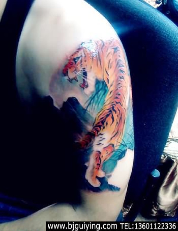 上山虎纹身图案现代纹身风格_动物纹身图案大全_纹身图吧