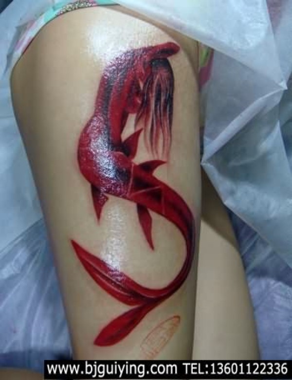 腿上的美人鱼纹身现代纹身风格_动物纹身图案大全_纹身图吧