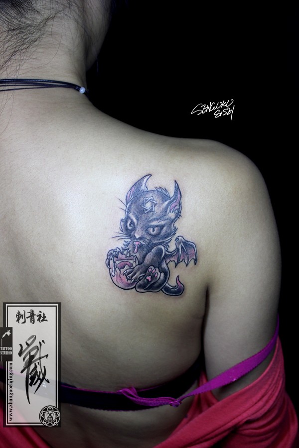 恶魔猫纹身,猫纹身_动物纹身图案大全_纹身图吧