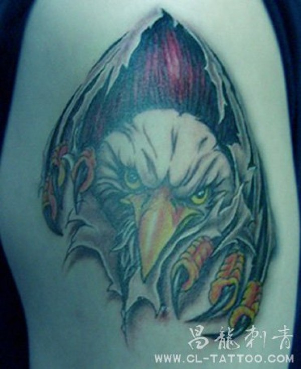 撕裂破口鹰头_男士小图_动物纹身图案大全_纹身图吧