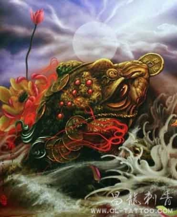 福州招财纹身蟾蜍刺青图案设计_神兽动物_动物纹身图案大全_纹身图吧