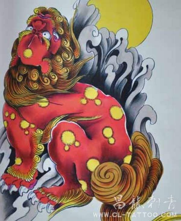 福州吉祥唐狮望月图_神兽动物_动物纹身图案大全_纹身图吧
