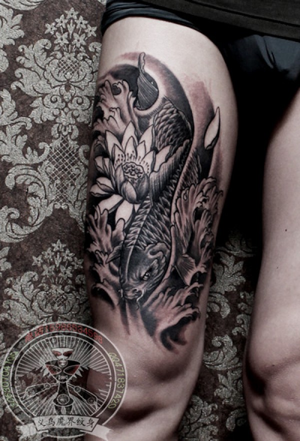锦里刺青/男生富贵鱼纹身_动物纹身图案大全_纹身图吧