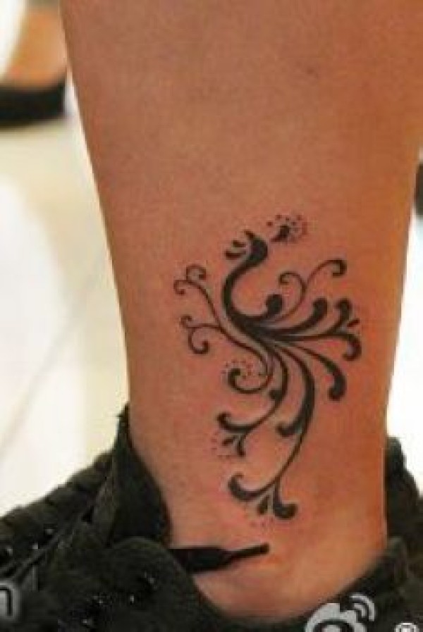 腿部精美好看的图腾凤凰纹身图案_凤凰纹身图案大全_纹身图吧