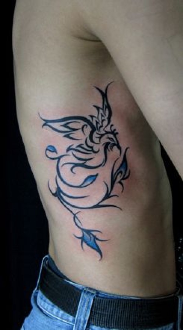 一款男孩子侧胸图腾凤凰纹身图案_凤凰纹身图案大全_纹身图吧