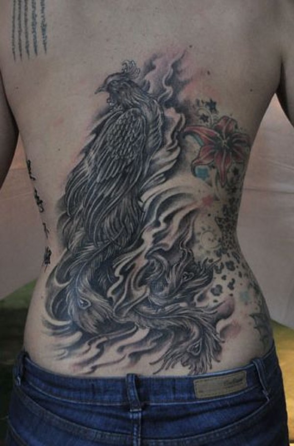 女孩子满背彩色凤凰纹身图案_凤凰纹身图案大全_纹身图吧