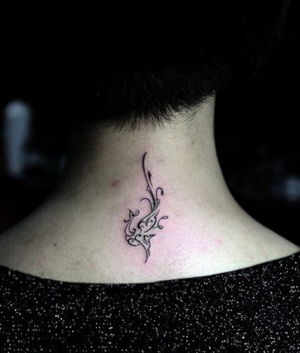 女孩子颈部小巧的图腾凤凰纹身图案_凤凰纹身图案大全_纹身图吧
