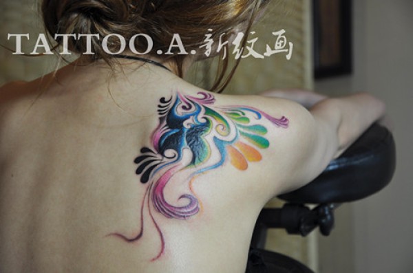 女孩子满背彩色凤凰纹身图案_凤凰纹身图案大全_纹身图吧
