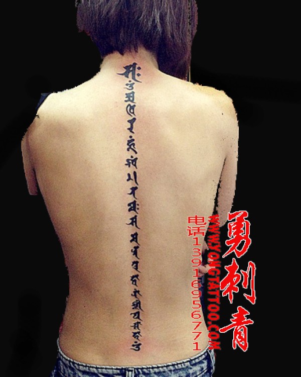 一幅背部烙印梵文文身图片由_梵文纹身图案大全_纹身图吧