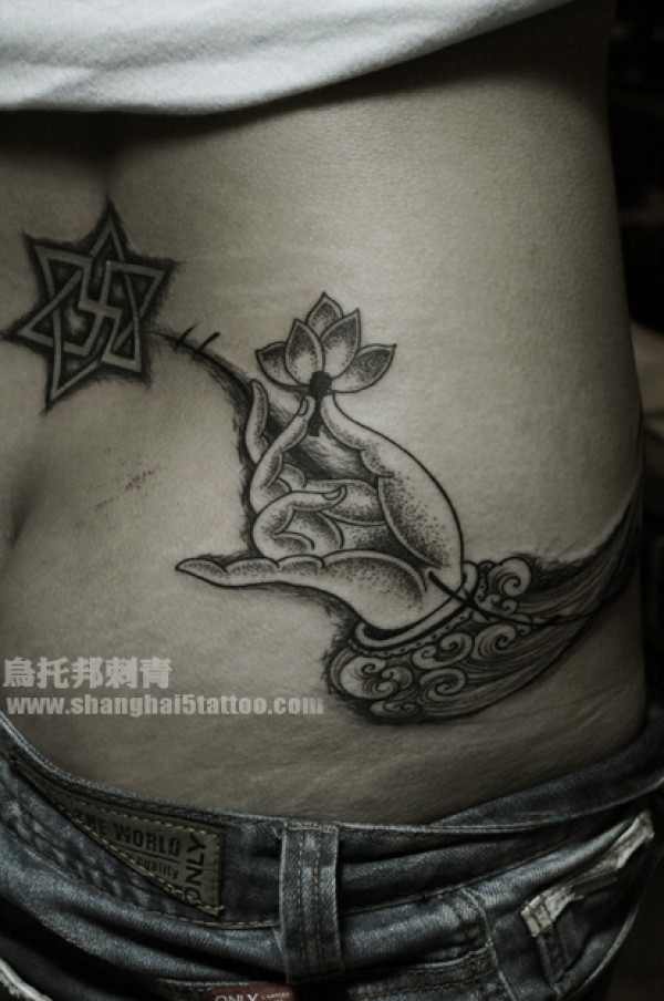 莲花佛手(梵文和六芒星为原有)_梵文纹身图案大全_纹身图吧