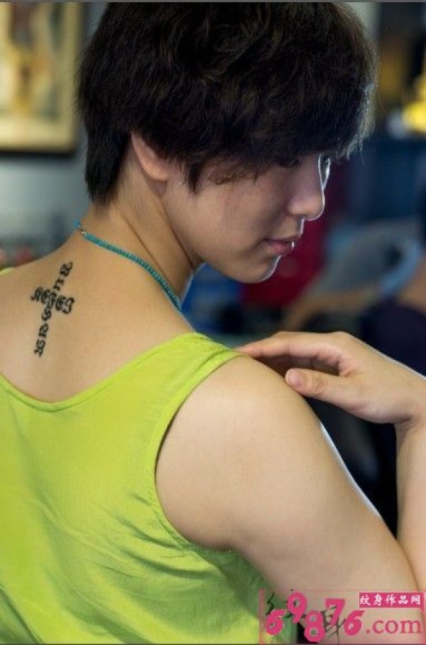 后颈梵文字母十字架纹身_梵文纹身图案大全_纹身图吧