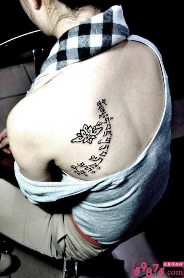 背部莲花梵文纹身图片_梵文纹身图案大全_纹身图吧