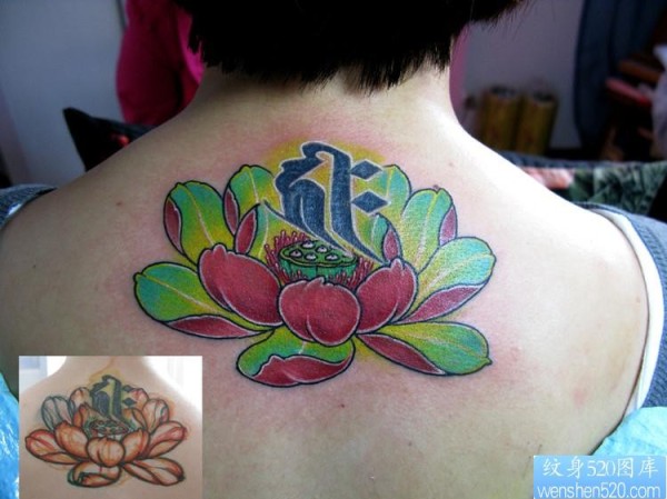 女孩子背部莲花梵文纹身图片_梵文纹身图案大全_纹身图吧