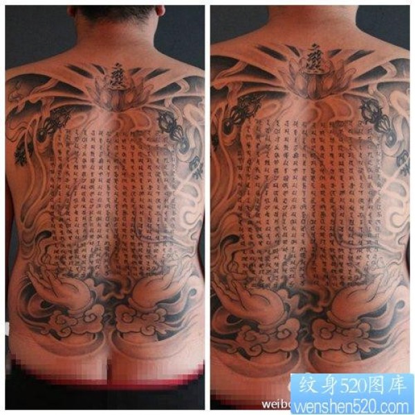 流行经典额满背梵文纹身图片_梵文纹身图案大全_纹身图吧