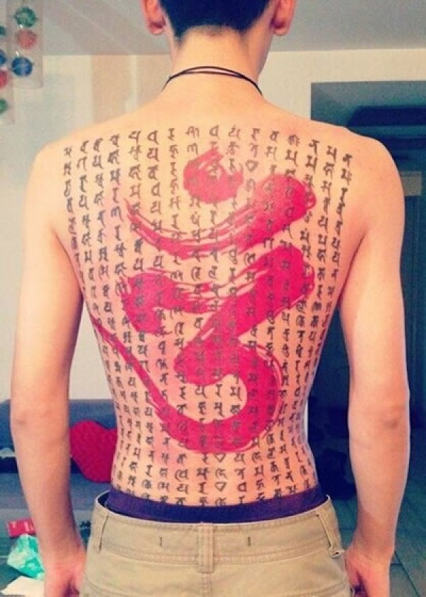 后背各种造型的梵文纹身图案满背梵文篇章纹身_梵文纹身图案大全_纹身图吧
