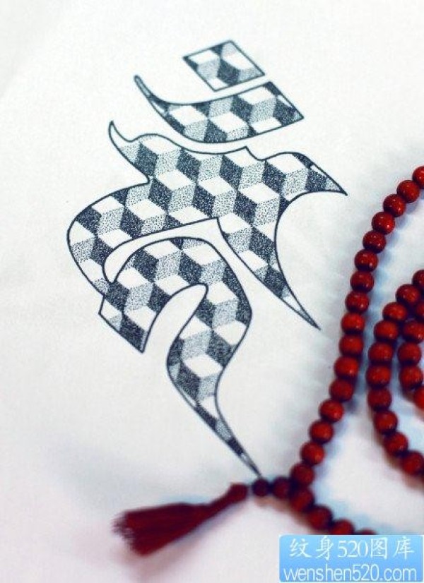 一幅背部烙印梵文文身图片由_梵文纹身图案大全_纹身图吧