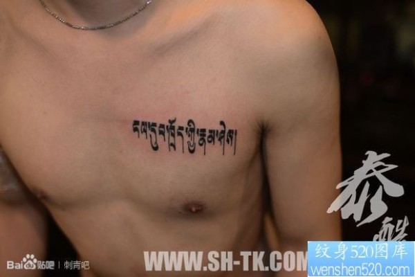 男生胸部一幅梵文纹身图片_梵文纹身图案大全_纹身图吧