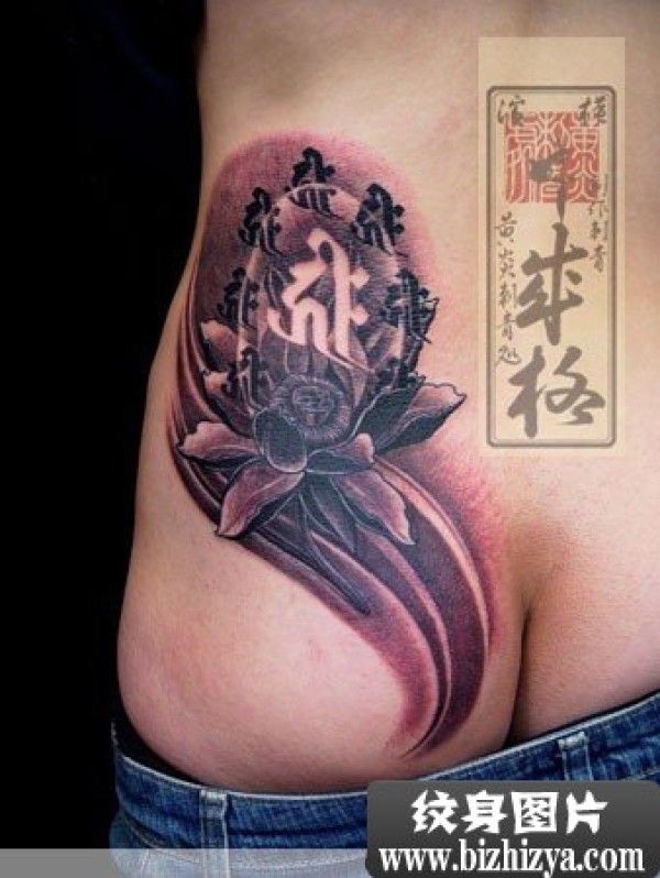 背部莲花梵文纹身图片_梵文纹身图案大全_纹身图吧